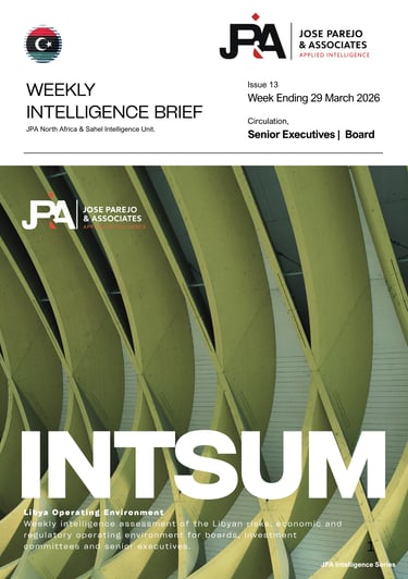 The licensing round response confirms that institutional investors are actively pricing Libya's governance risk. Organisations considering new Libya entry or renewing existing exposure face a production baseline that is technically recoverable but institutionally fragile. JPA INTSUM (and PULSE) applies structural trajectory analysis — geopolitical constraint mapping, fiscal transparency assessment and infrastructure recovery modelling — to deliver a 12-month decision horizon calibrated to board and investment committee requirements