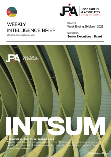 Mozambique LNG represents the largest single energy infrastructure commitment in sub-Saharan Africa in a generation. Operational security review before contract commitment: MANDATORY. JPA PULSE applies structural trajectory analysis — security environment assessment, infrastructure recovery modelling and sovereign risk evaluation — to deliver a 12-month decision horizon calibrated to board and investment committee requirements.